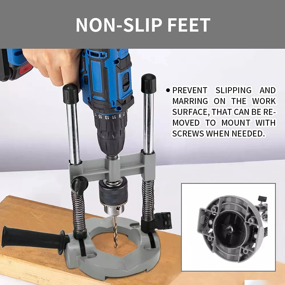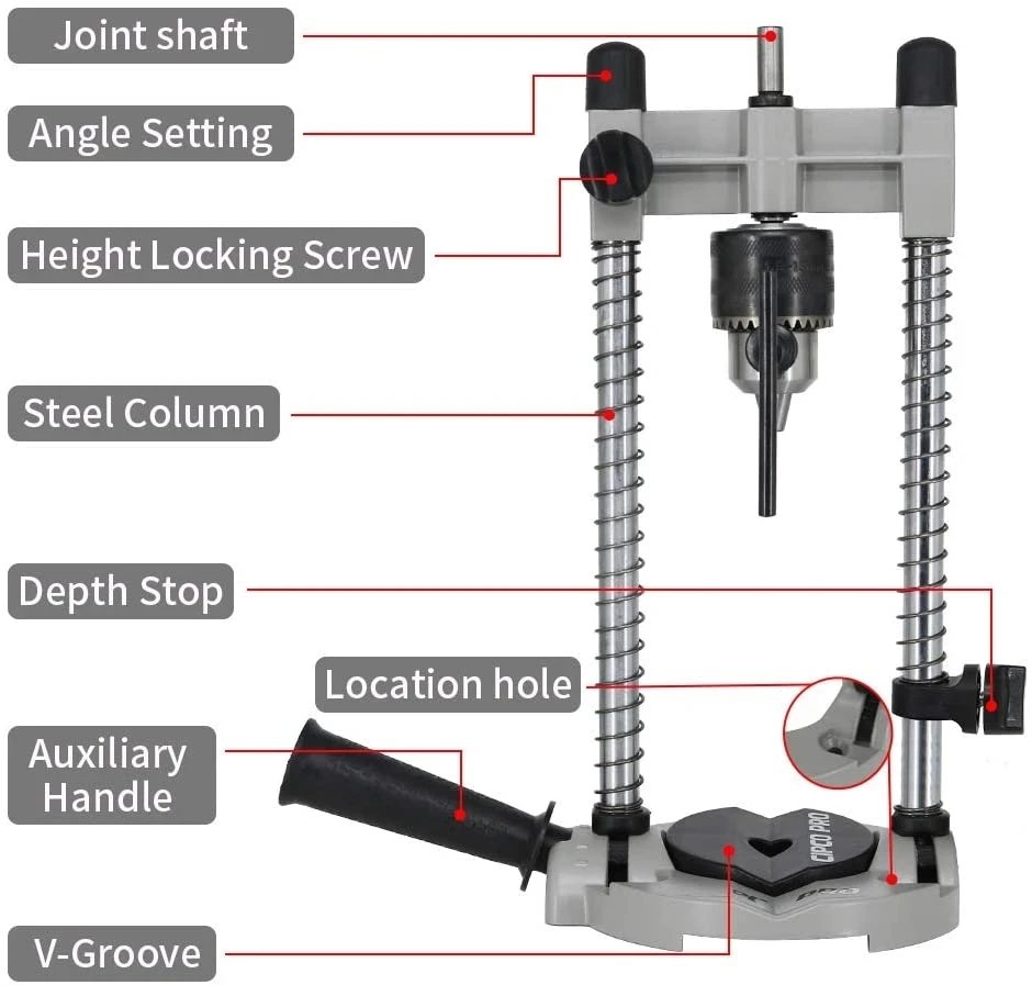 Спецификация:Материал: алюминиевый сплав + стальРазмер: 14x29 смСверлильный Патрон Диапазон зажима: 1,5-13 ммСверлильный патрон размер хвостовика: 8 ммРегулируемый угол: 45-90 °Максимальный ход: 150 ммОсобенности:1. Прочный и долговечныйОснование изготовлено из высококачественного алюминиевого сплава, а Стойка изготовлена из стали, основная структура прочная и долговечная.2. Регулируемый уголДанное сверло может использоваться в горизонтальном, вертикальном или угловом положении.3. Съемная ручкаДополнительная ручка для точного размещения и против скольжения при сверлении.4. Широкое использованиеЭто идеальный аксессуар для вашей электрической дрели, для точного сверления и распиловки отверстий под заданными углами в любой ситуации-на стене, потолке, на косяках, на круглых заготовках, зубцы и фигурные секции.5. Подходит для 99% сверлаШестигранный хвостовик 8 мм подходит для большинства электрических сверл, силовых сверл, легко устанавливается.6. Высокая эффективностьСами направляющие имеют пружины для быстрого возврата при повторном сверлении.Посылка включает в себя:1 x направляющая буровая стойка