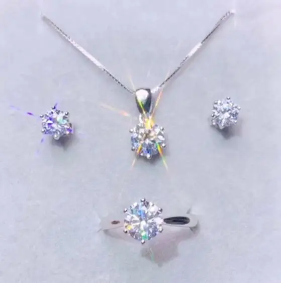 Кольцо, серьги и ожерелье с бриллиантами, серебро 925 пробы