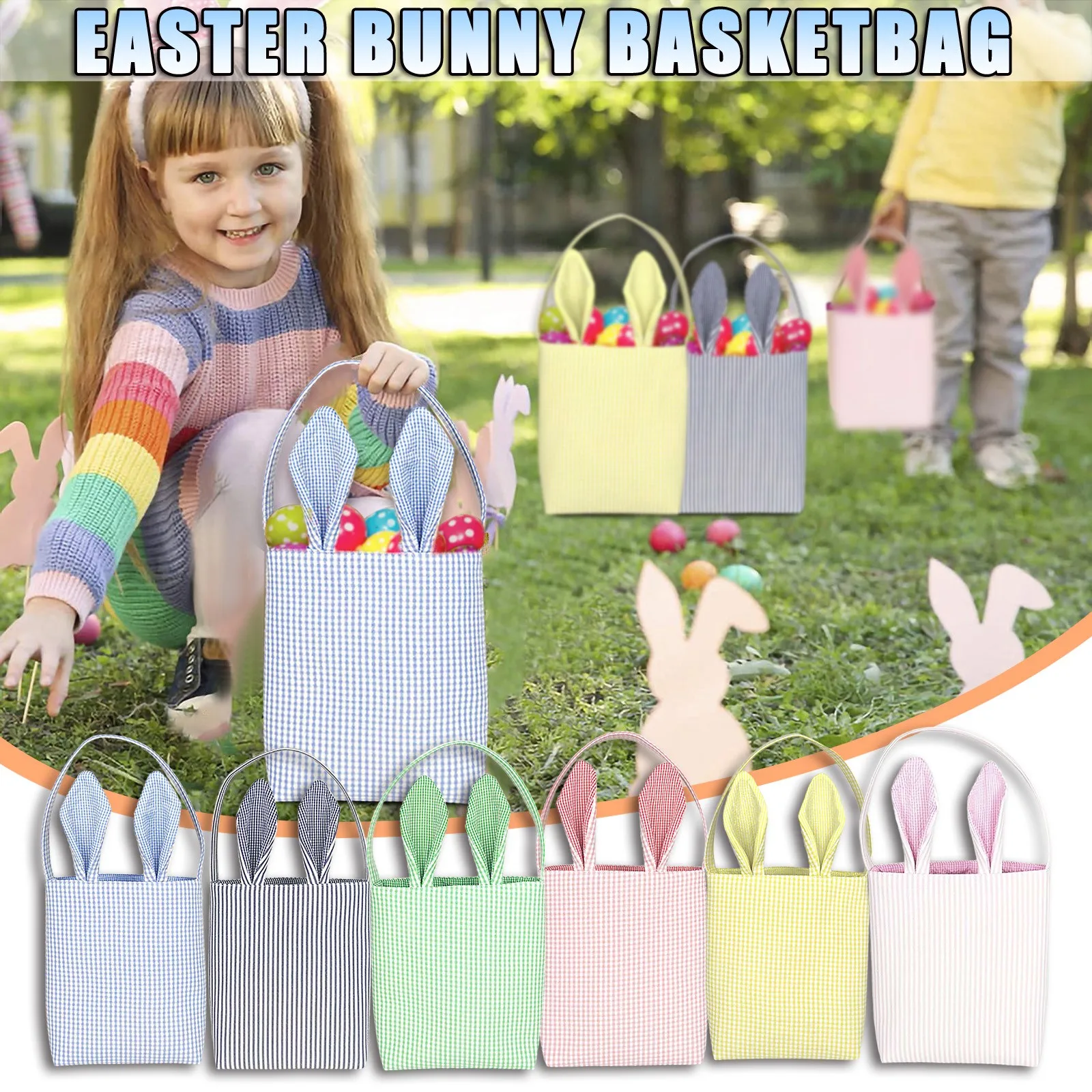 Пасхальная корзина праздничный кролик заячьи уши напечатанный холст подарок сумка конфеты
