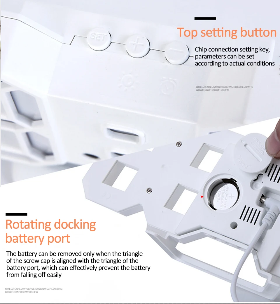 Аккумулятор: CR2032 (время памяти при отключении питания часы питаются от USB кабеля)