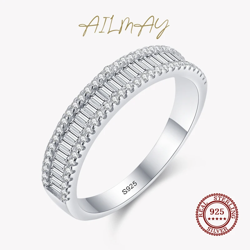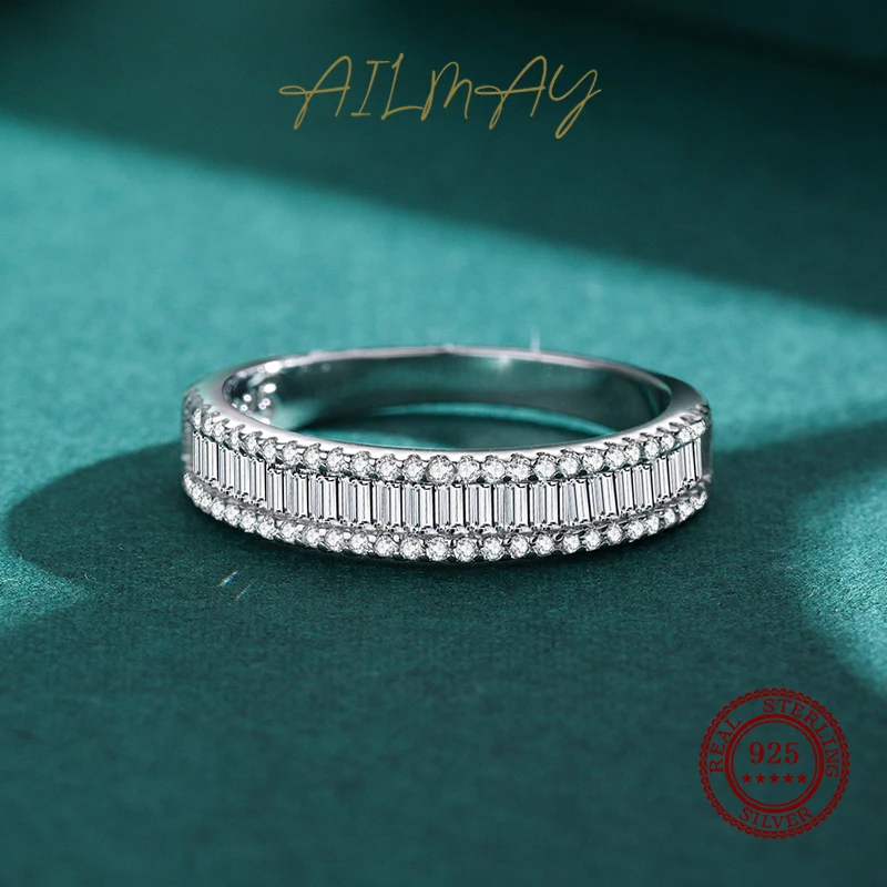 Ailmay модные сверкающие круглые прямоугольные кольца с фианитом Настоящее серебро 925 пробы кольцо на палец для женщин Роскошные свадебные изысканные ювелирные изделия
