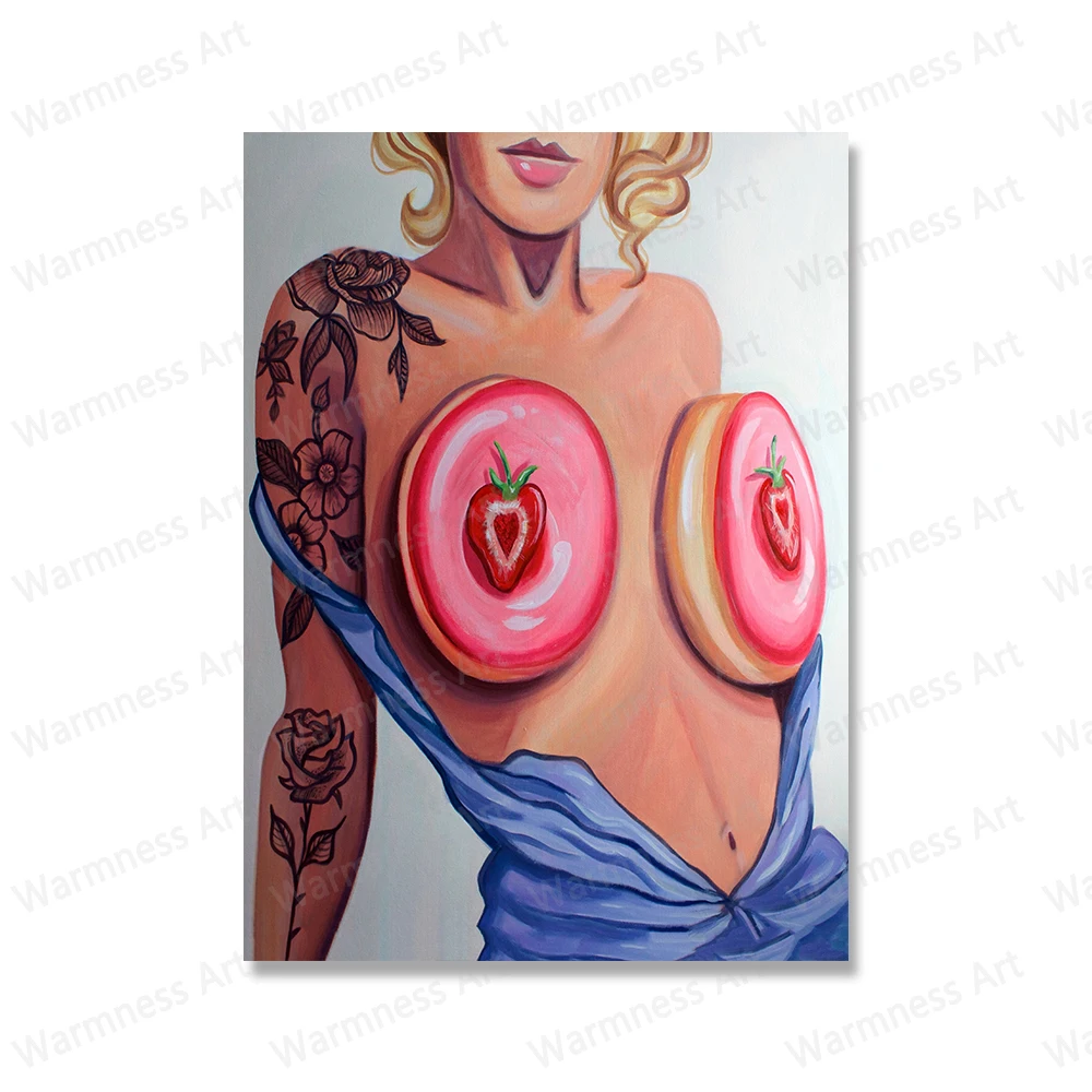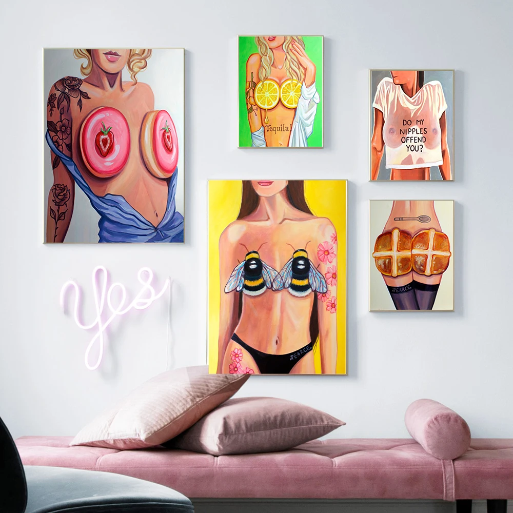 Постер в скандинавском стиле с забавной грудью, абстрактная сочная лимона, Художественная печать, булочки на холсте, Современная Обнаженная Настенная картина, декор для ванной комнаты и дома