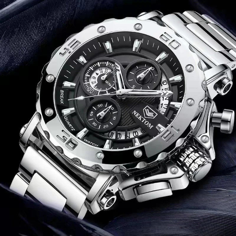 Часы наручные NEKTOM Мужские кварцевые, водонепроницаемые спортивные в стиле милитари, с стальным ремешком