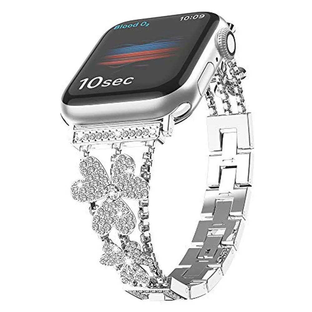 Ремешок металлический для Apple watch 7 6 5 4 SE, браслет из нержавеющей стали с розами для iwatch 3 38 мм 42 мм, браслет 45 мм 40 мм 44 мм