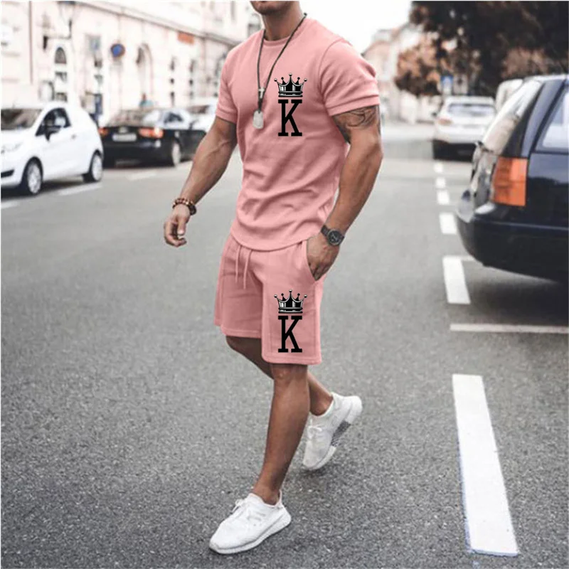 Костюм спортивный мужской из 2 предметов, короткий спортивный костюм с принтом K, футболка с короткими рукавами и шорты, Повседневная модная одежда на лето