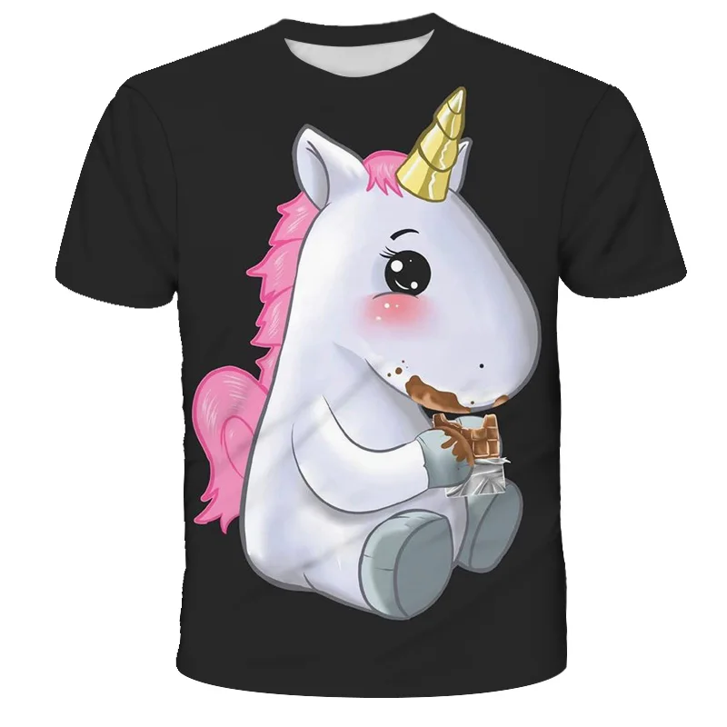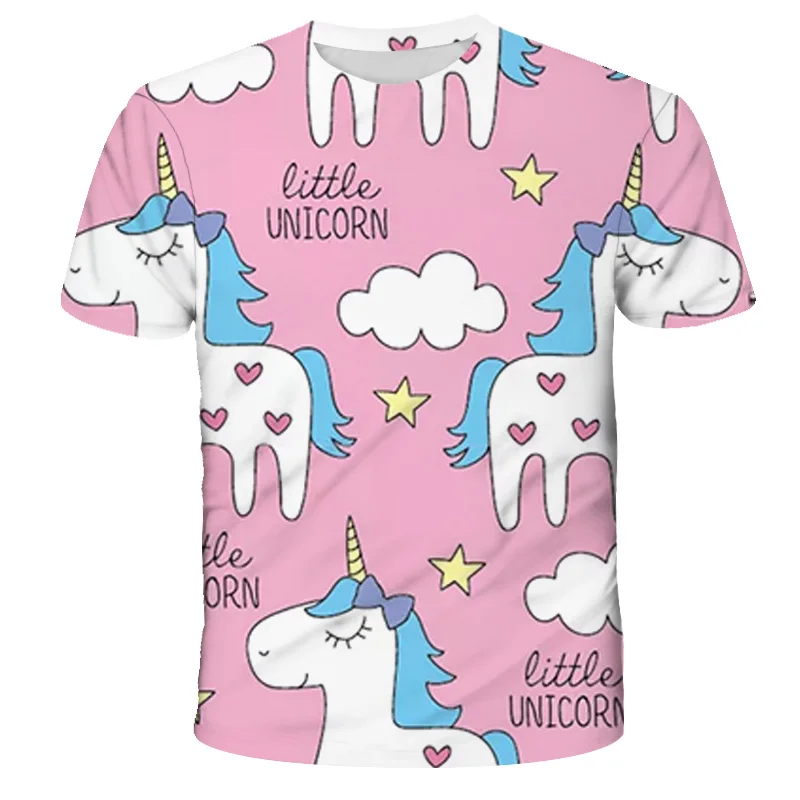 Футболка для мальчиков и девочек, милые Мультяшные 3D футболки с принтом единорога для мальчиков, Детская летняя футболка с коротким рукавом, топы, одежда