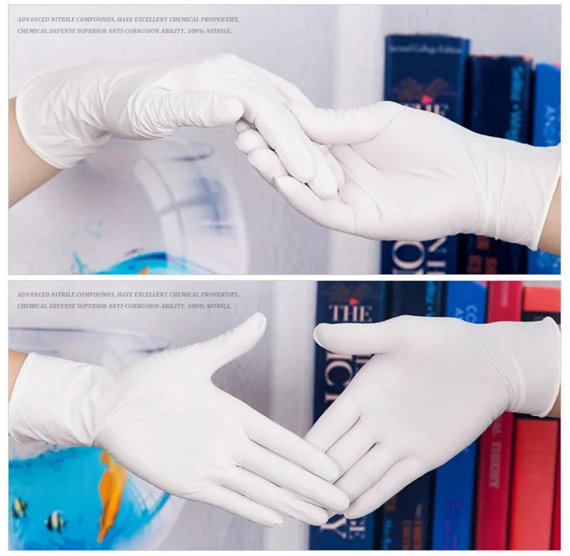 Особенности:Одноразовые домашние перчатки изготовлены из нитрилового резинового материала, высокого качества, нетоксичные, асептические, здоровые в использовании.Без пластификатора, без эфира, без силиконового масла, без порошка.Разумная толщина, хорошее ощущение прикосновения, хорошая гибкость, кислота и Щелочестойкость, маслостойкость, анти-бактерии.Идеально подходит для домашнего использования, санитарно-технического осмотра, пищевой промышленности, химической промышленности и т. Д.Характеристики:Состояние на 100% абсолютно новыйМатериал: Нитриловая РезинаЦвет: как на фотоРазмер: S, M, L,XL (опционально)S: перчатка тепловой Ширина: 7 ~ 8 см/2,7 ~ 3,1 дюйма, Длина: прибл. 24 см/9,4 дюймаМ: перчатка тепловой Ширина: 8 ~ 9 см/3,1 ~ 3,5 дюйма, Длина: прибл. 24 см/9,4 дюймаL: перчатка тепловой Ширина: 9 ~ 10 см/3,5 ~ 3,9 дюйма, Длина: прибл. 24 см/9,4 дюймаРазмер XL: перчатка тепловой Ширина: 10 ~ 11 см/3,9 ~ 4,3 дюйма, Длина: прибл. 24 см/9,4 дюймаОтчет о проверке пищевых продуктов SGS