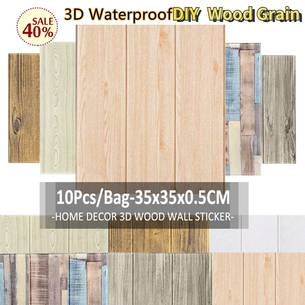 10 шт. Самоклеящиеся 3D деревянные наклейки сделай сам, водонепроницаемые пенные обои с отклеиванием и приклеиванием, обои для детской комнаты, гостиной, спальни, Настенный декор