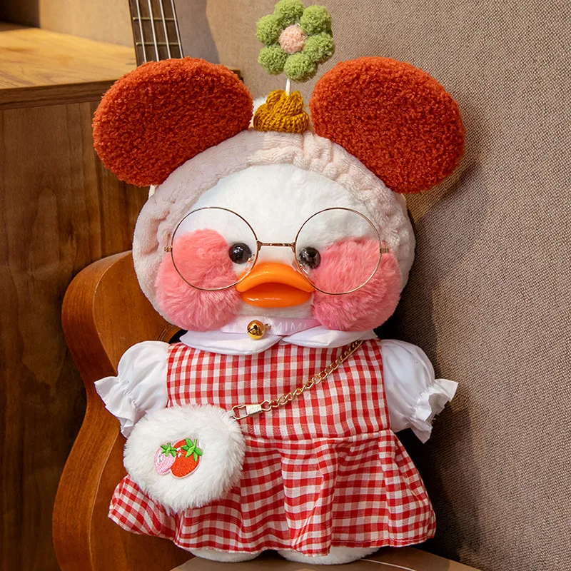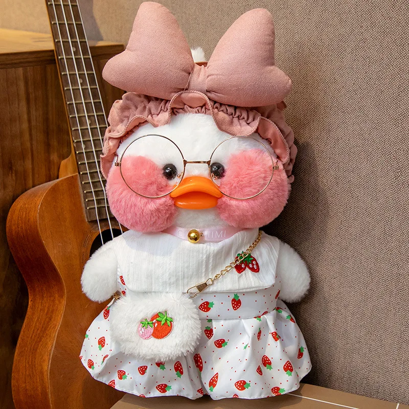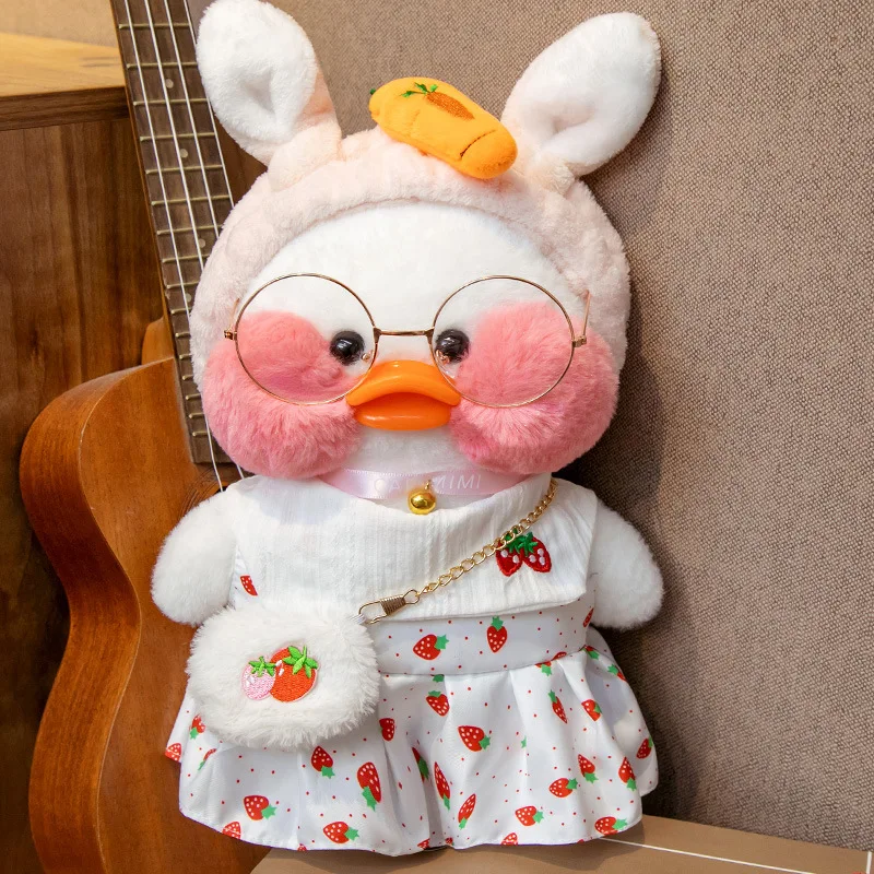 30 см лалафанфан утка плюшевая игрушка мультфильм Милая Белая утка набивная кукла мягкая игрушка платье Одежда для девочек Kawaii кукла подарок на день рождения