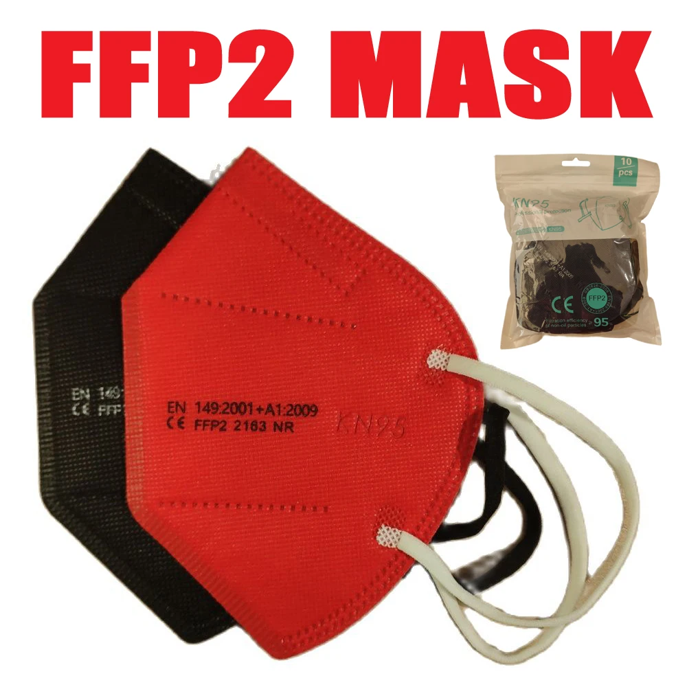 Черная FFP2 Маскировочная маска, одобренная KN95 Маскировочная маска для взрослых, 5-слойная Защитная Маскировочная маска fpp2, Маскировочная маска с красной пылью, респиратор CE