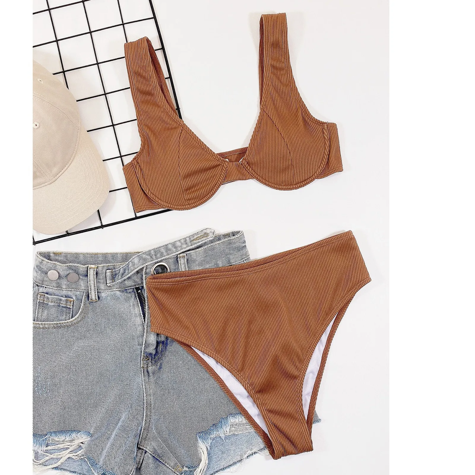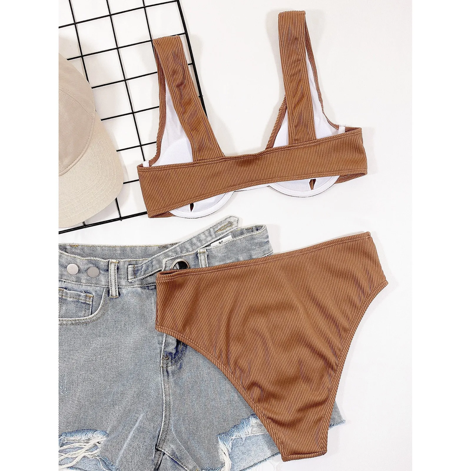 Женский комплект для плавания из 2 предметов, купальный костюм для женщин, сексуальные стринги с высокой талией, Женский комплект бикини 2022, комплект пуш-ап