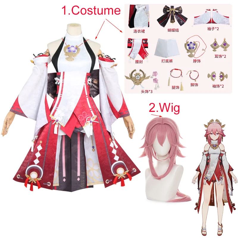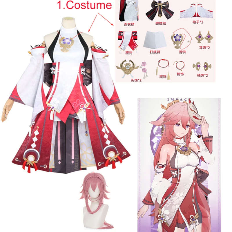 Костюм для косплея Genshin Impact Yae Miko Guuji Yae, милые парики, искусственная кожа, наряды, костюмы на Хэллоуин для женщин, искусственная кожа