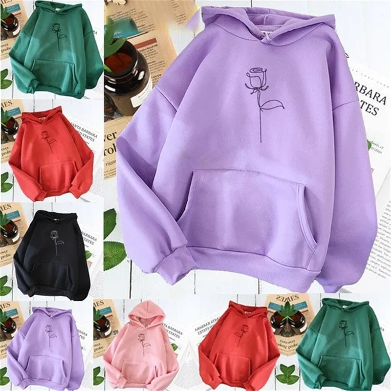 Женская толстовка с капюшоном в стиле Харадзюку с принтом роз, повседневные свободные пуловеры с длинным рукавом и карманами, толстовки Bts