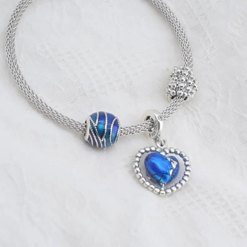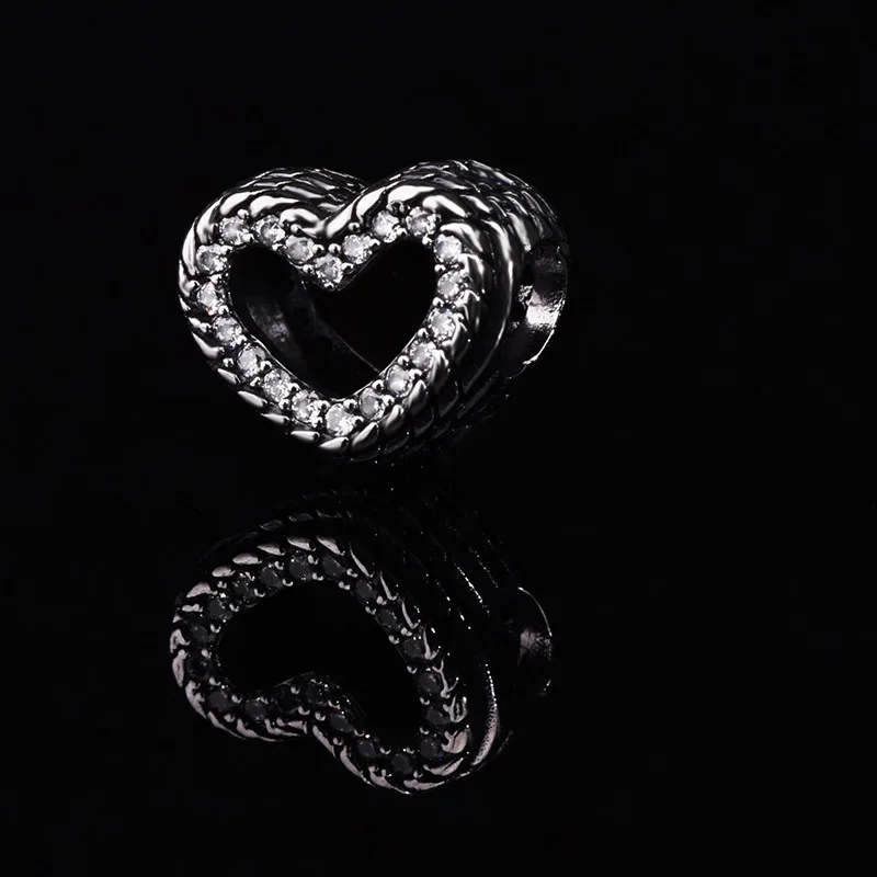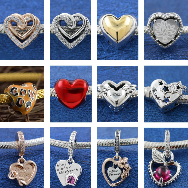 Подвески из серебра 925 пробы, блестящие золотые бусины в форме сердца подходят для оригинальных браслетов Pandora для женщин