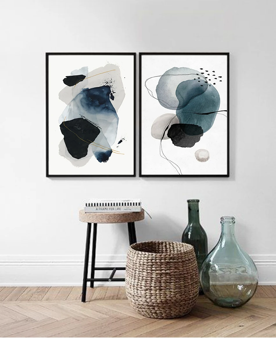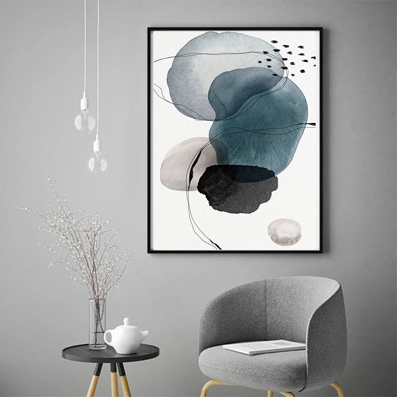 Черные и синие абстрактные чернила, холст, картины, современные плакаты и принты, настенная живопись, картины на холсте, гостиная, домашний декор