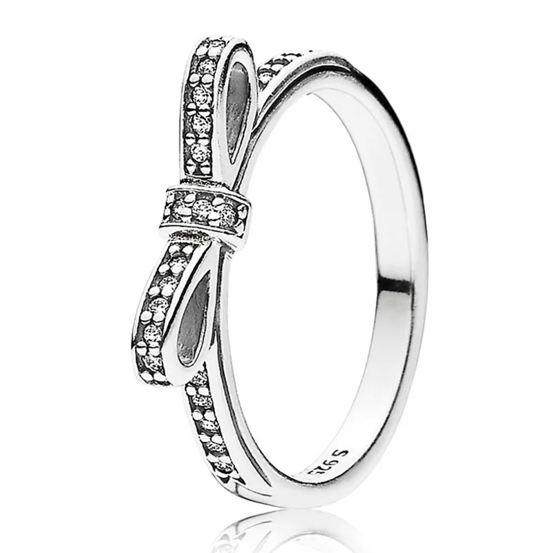 Женское кольцо-бант из серебра 925 пробы, с фирменным логотипом