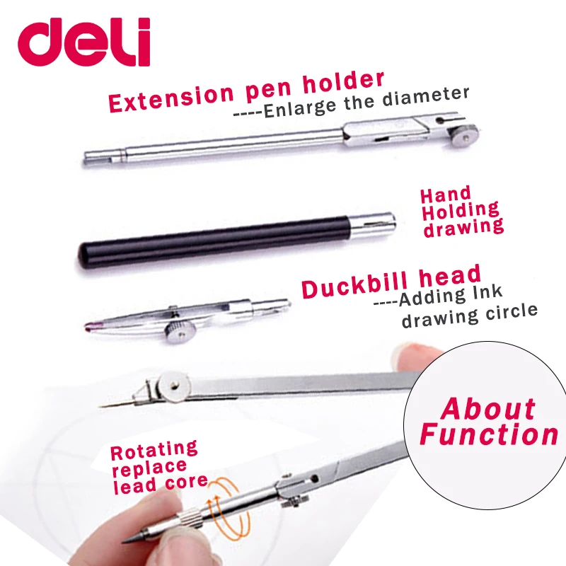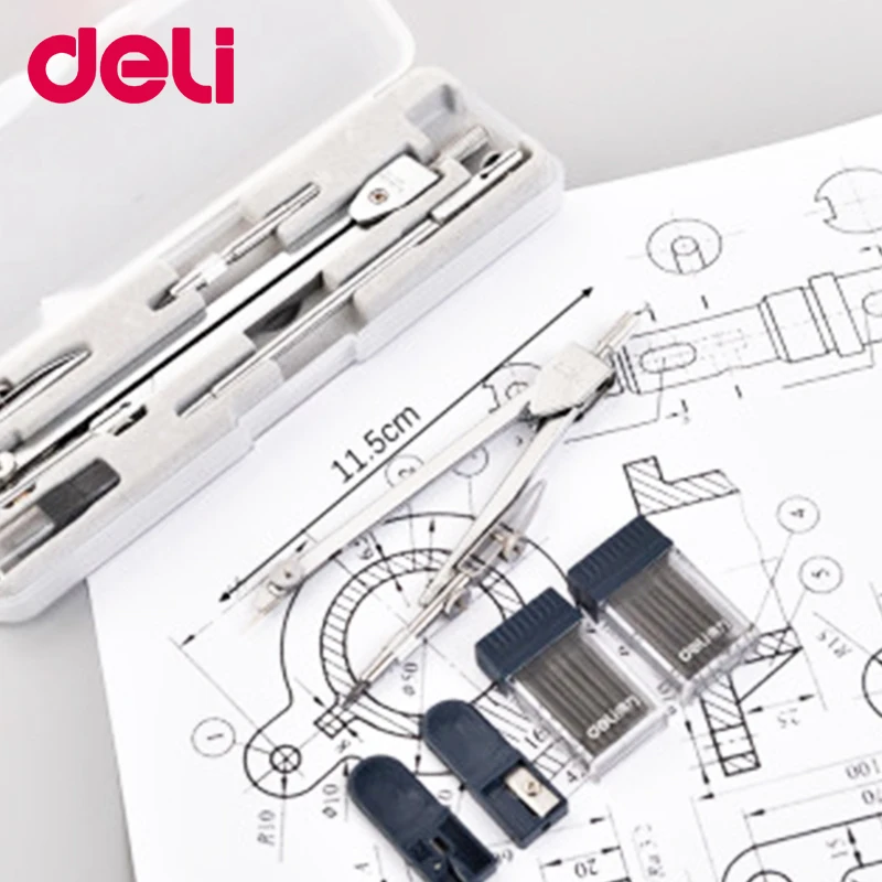 Многофункциональный компас для чертежей Deli из нержавеющей стали, математическая геометрия, 2456 шт.набор, инструмент для кругов, прочные школьные принадлежности