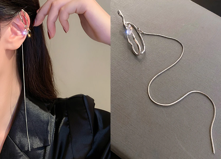 ShapePearl Ear Clips Without Pierced Ears Chain Earrings