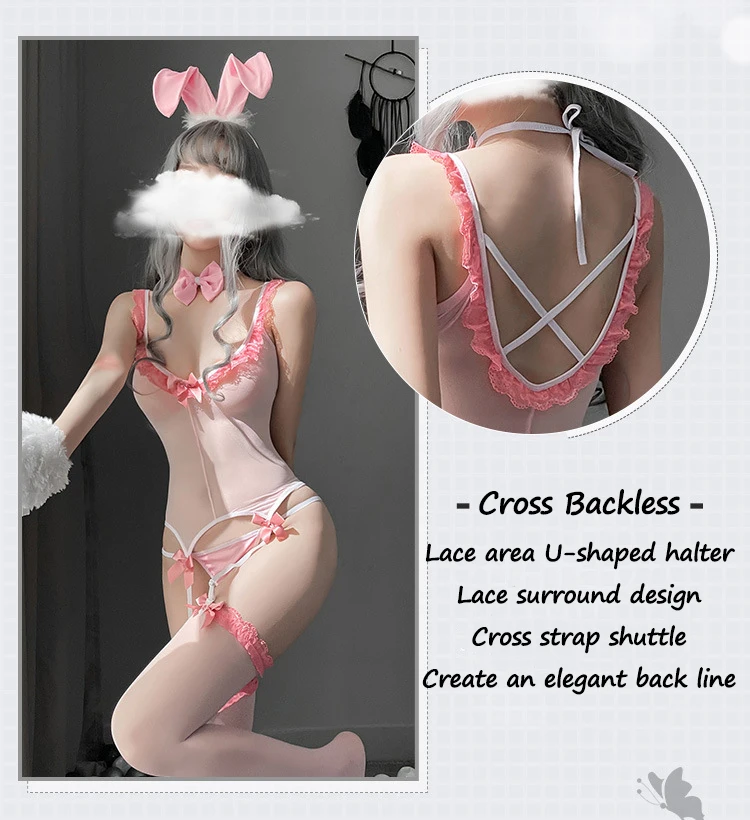 Женский костюм Банни для косплея, 3 цвета, сексуальный комбинезон Kawaii, кружевной бант, милое Аниме, эротическое белье, соблазнительный наряд