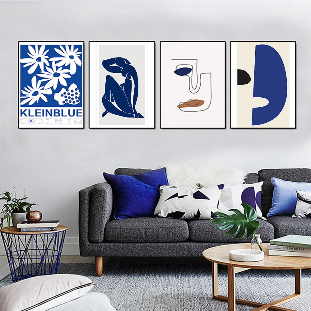 Современная Абстрактная синяя Картина на холсте Клейн геометрический минималистический человеческий тело скандинавский печатный плакат Настенная картина для домашнего декора
