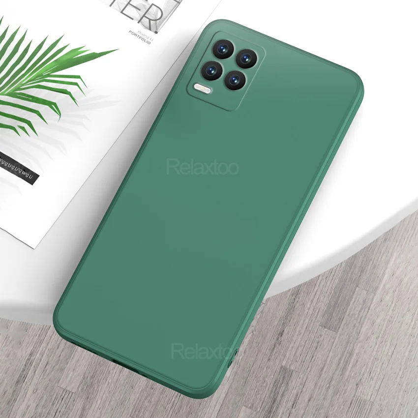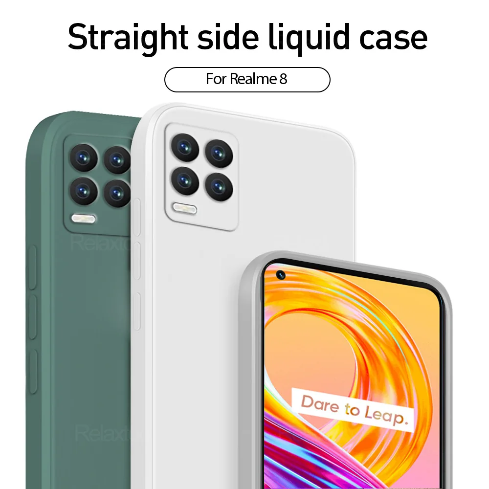 Квадратный чехол из жидкого силикона для OPPO Realme 8 4G, противоу...