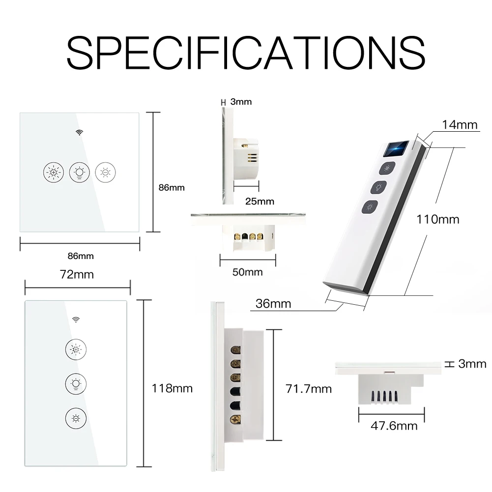 1,2/3-way multi-control association для управления 1 светильник с несколькими переключателями диммера; Панель из закаленного стекла с защитой от царапин подходит для любого домашнего декора и обеспечивает легкое сенсорное управление; вы можете связать этот переключатель с несколькими различными переключателями в приложении Smart Life.