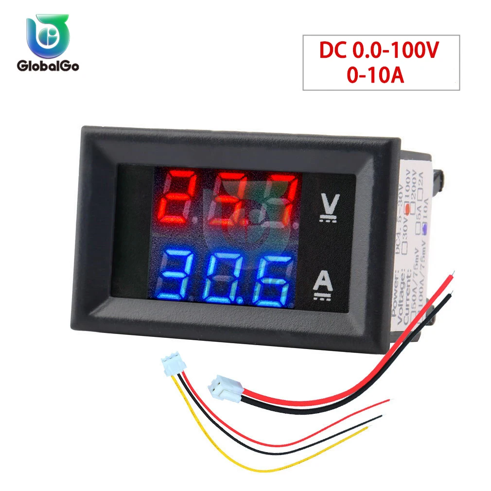 Цифровой вольтметр Амперметр 10 А постоянного тока 100 в со светодиодной подсветкой, измеритель напряжения и силы тока для автомобиля и мотоцикла, тестер, панель монитора, инструмент, синий + красный