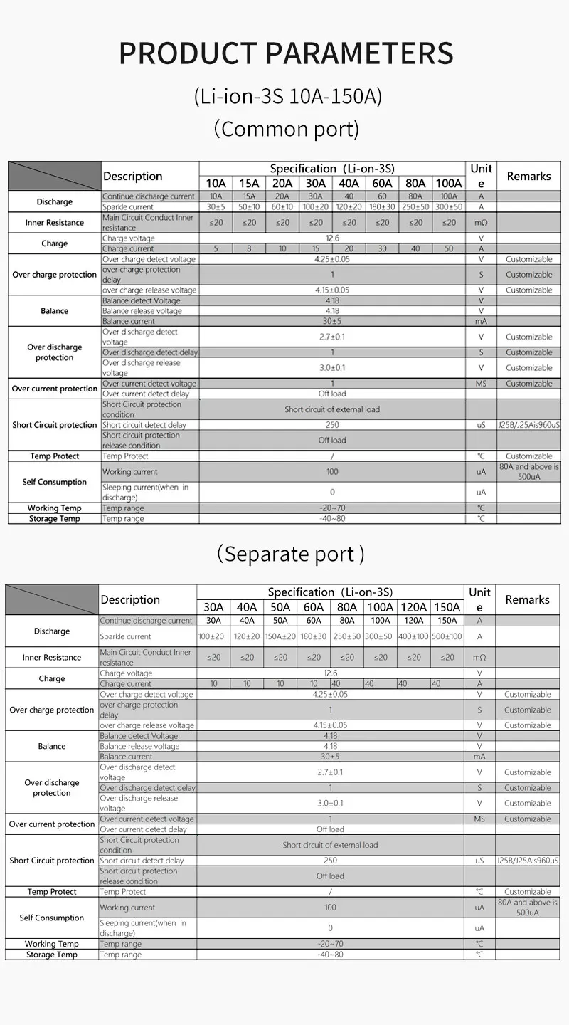 3 типичных обнаружения напряжения для каждой ячейки. Таким образом, каждый аккумулятор будет предотвращен из-за заряда или разрядки. Функция защиты от перегрузки по току и короткого замыкания очень надежная. Долгое время короткого замыкания нагрузки не повлияет на печатную плату и батарею. Защита от температуры во время зарядки и разрядки.
