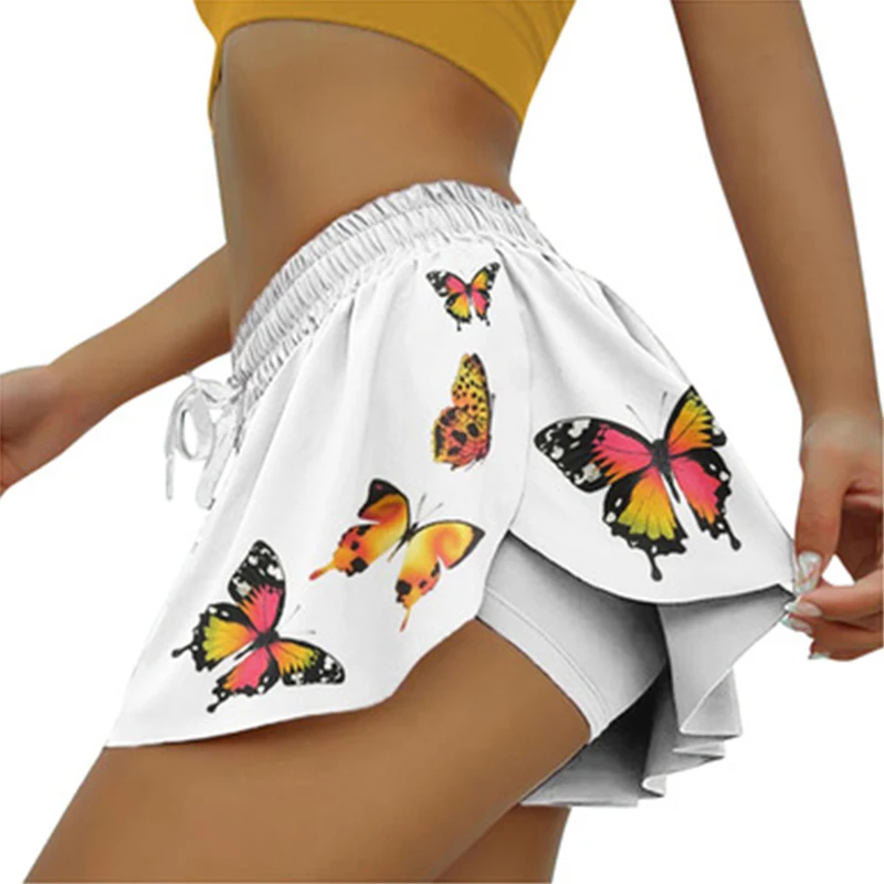 Летние женские шорты для бега 2 в 1 с оборками в виде ягодиц, быстросохнущая фальшивая юбка, сексуальные короткие штаны для тренировок в тренажерном зале, модные шорты для йоги