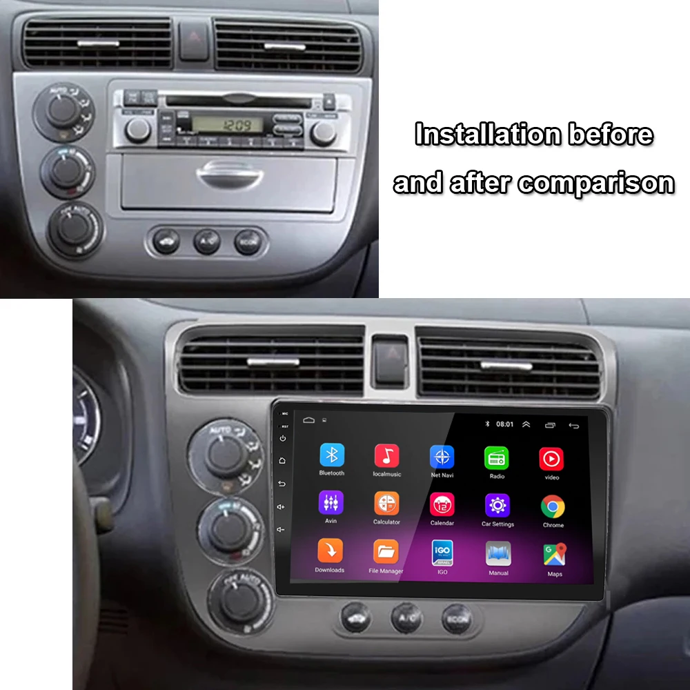 Автомагнитола 2 din, экран android, автомобильное радио, мультимедийный стерео плеер, беспроводной Carplay, Автомобильный GPS для Honda CIVIC 2000, 2001, 2002-2006
