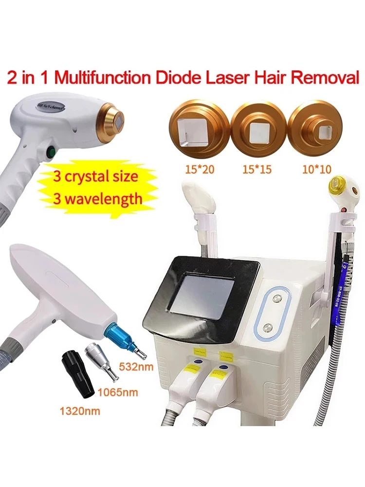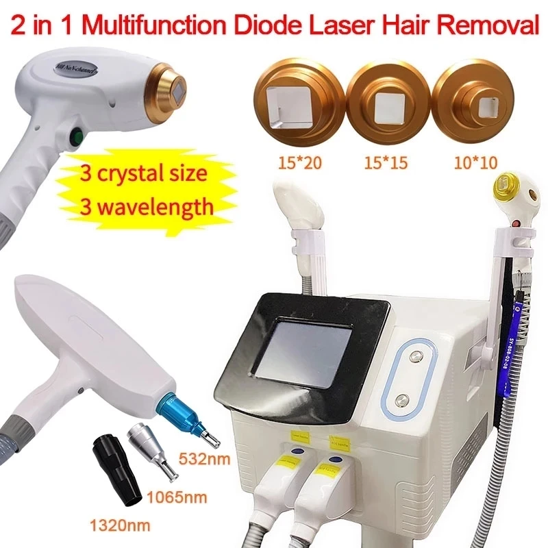 2022 Профессиональный 2-в-1 nd yag удаление татуировок 3 длины волны диодный лазер удаление волос 808 нм 1064 нм 755 нм александритовый лазер