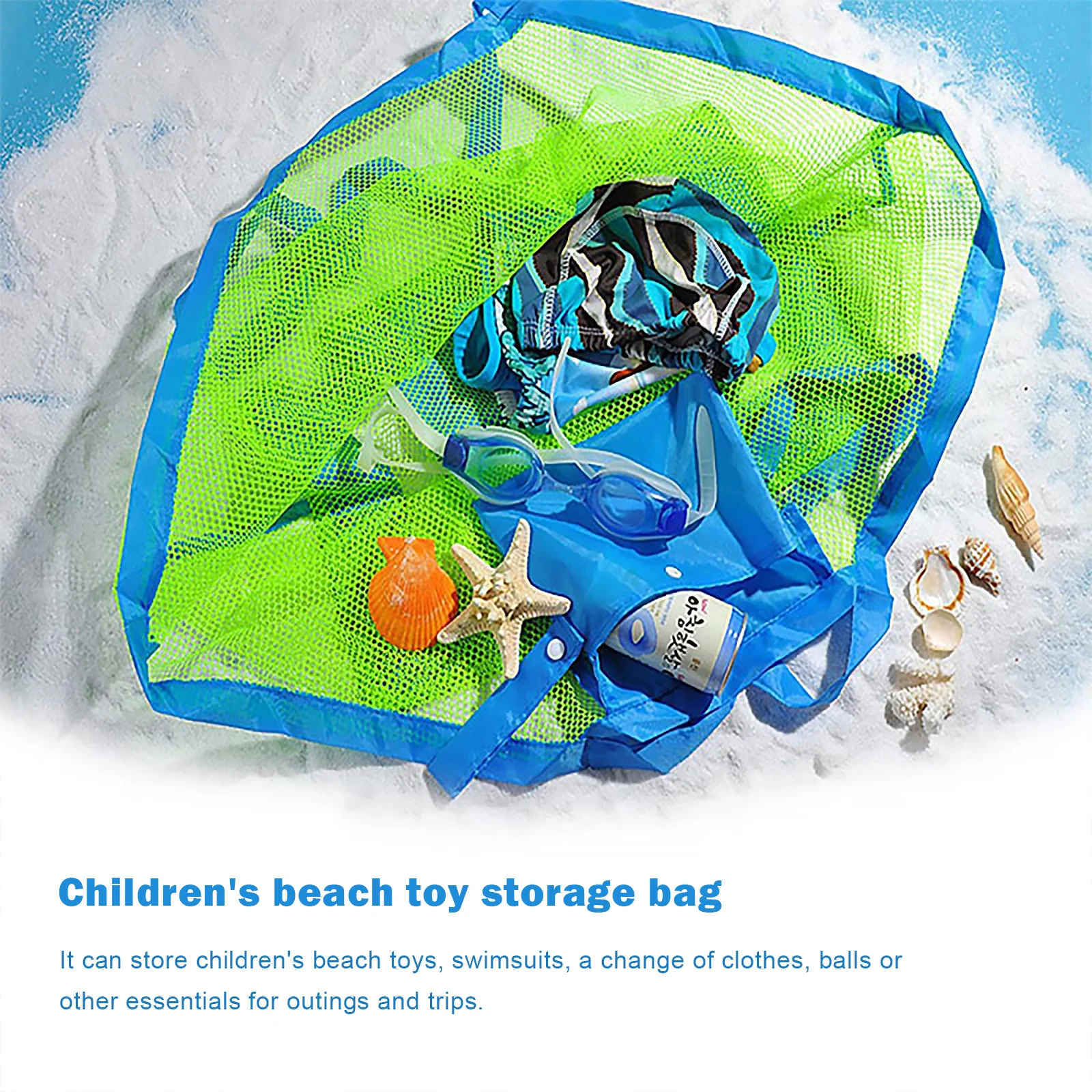Пляжная сумка для игрушек, детская пляжная ракушка, сетчатая пляжная сумка для игрушек, складная, моющаяся, большая для детей, для путешествий