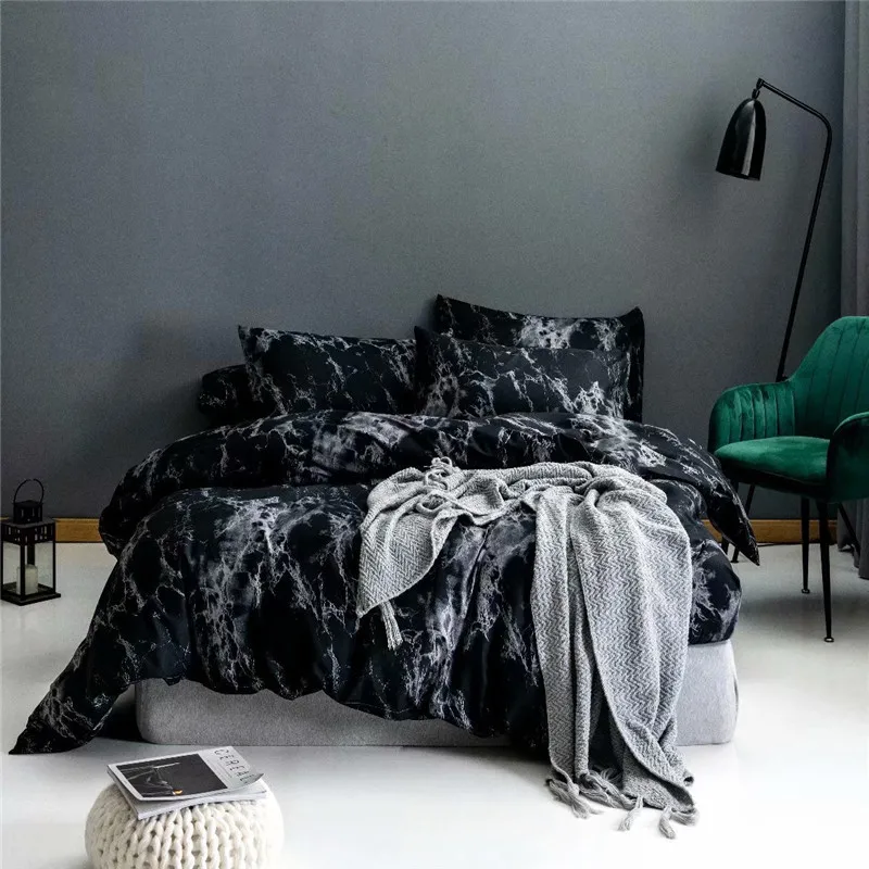 Мраморный комплект с пододеяльником и наволочкой, Модный комплект п...