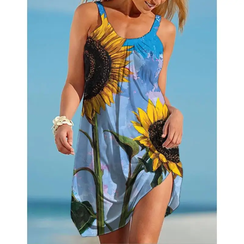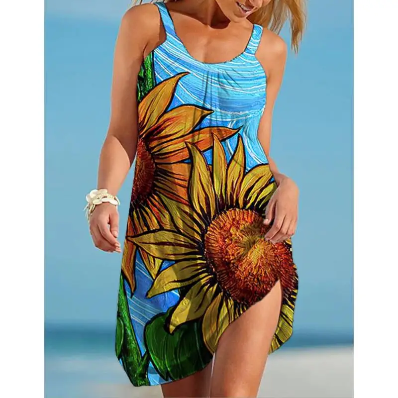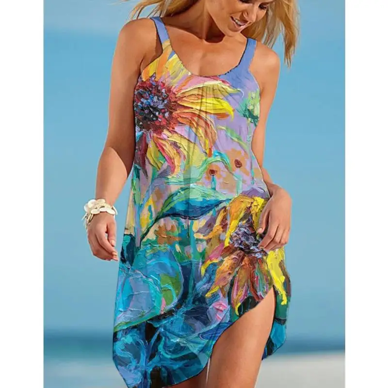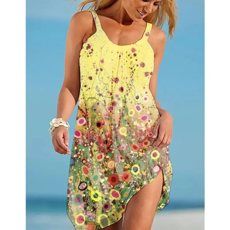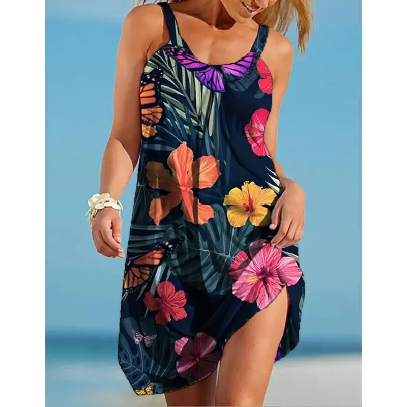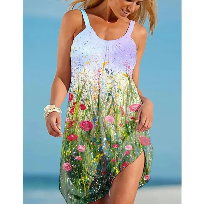 Платье женское с цветочным принтом, модное миди-платье на бретелях без рукавов, пикантное пляжное вечернее праздвечерние чное в стиле бохо, на лето