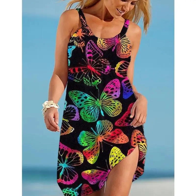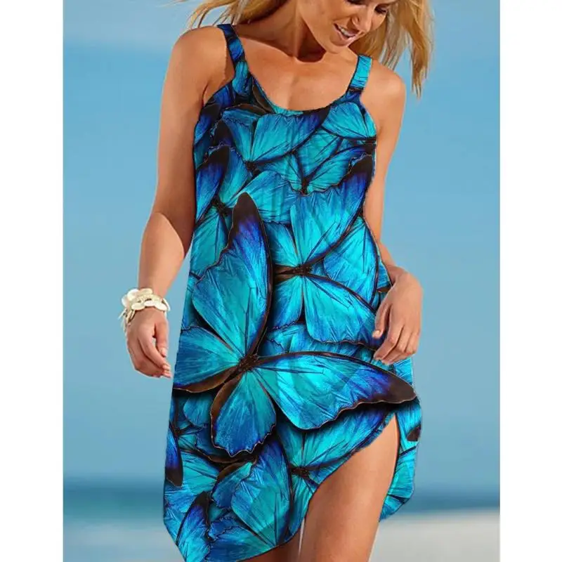 Мини-платье миди женское с принтом бабочек, Модный пляжный пикантны...