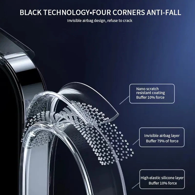 Поддержка беспроводной зарядкиМягкий защитный чехол из ТПУЖесткий чехол из акрилового материала, устойчивый к царапинамПодушка безопасности анти-падение дизайн, 10 м анти-падениеВыбранные материалы, полностью прозрачные, не желтые, когда вы используете долгое время