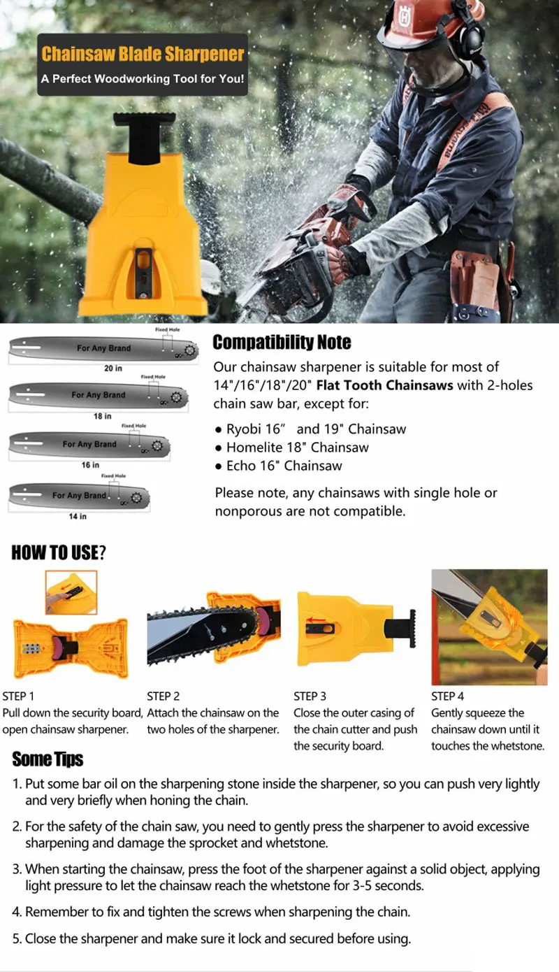 Портативная точилка для зубов цепной пилы, инструмент для быстрого шлифования и заточки зубов цепи пилы, для деревообработки