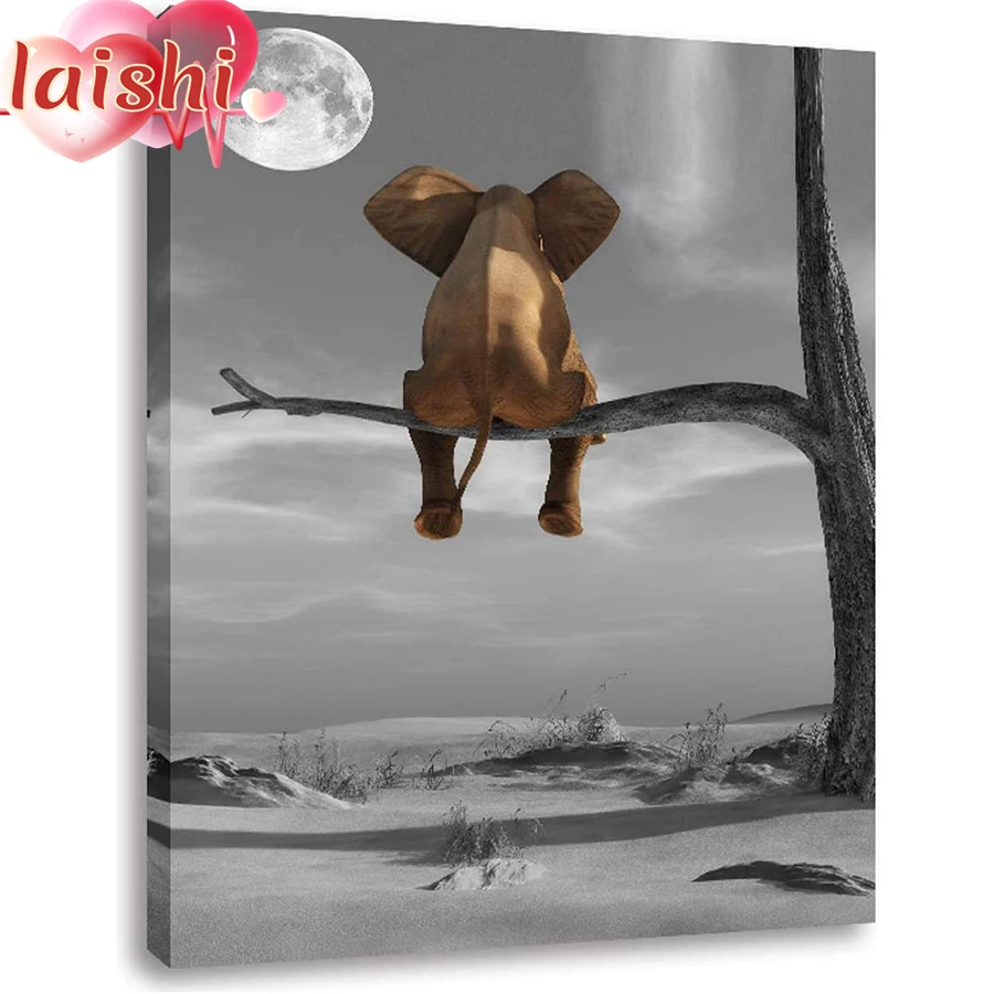 5D слон наблюдайте за луной, алмазная живопись, кот, полная квадратная фотография стразы, мозаика, домашний декор