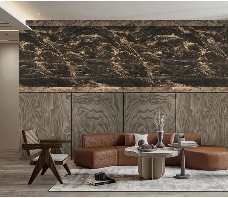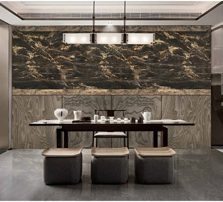 Фотообои на заказ в китайском стиле с имитацией под мрамор и древесину
