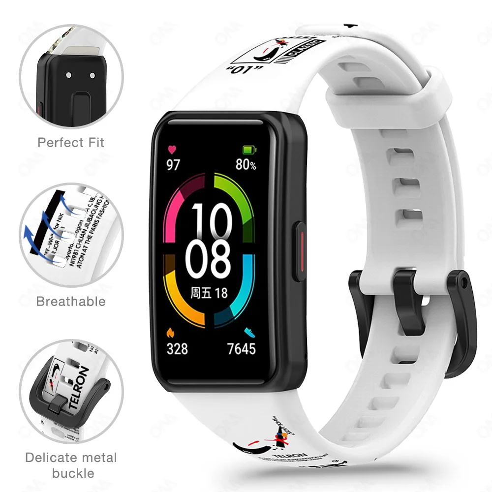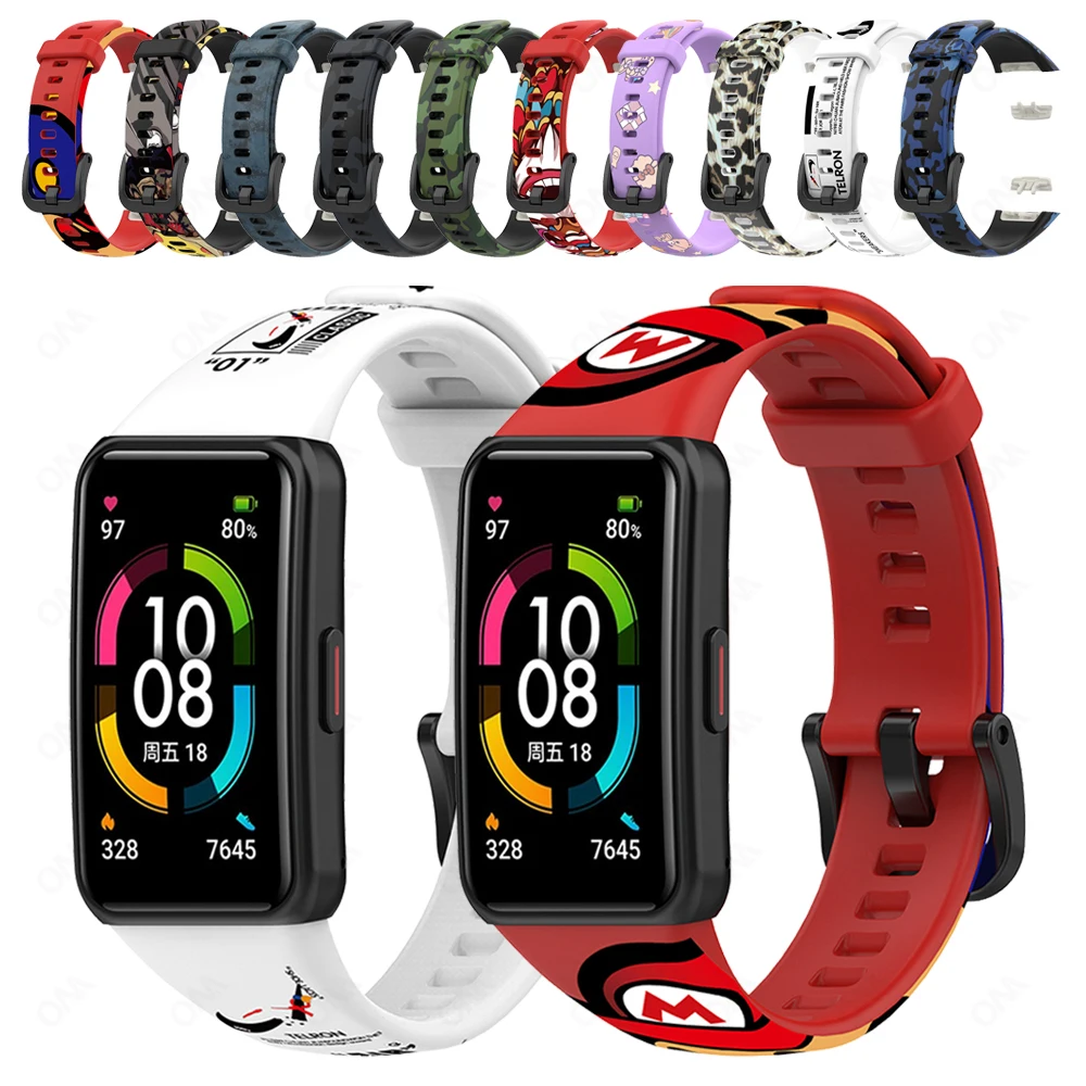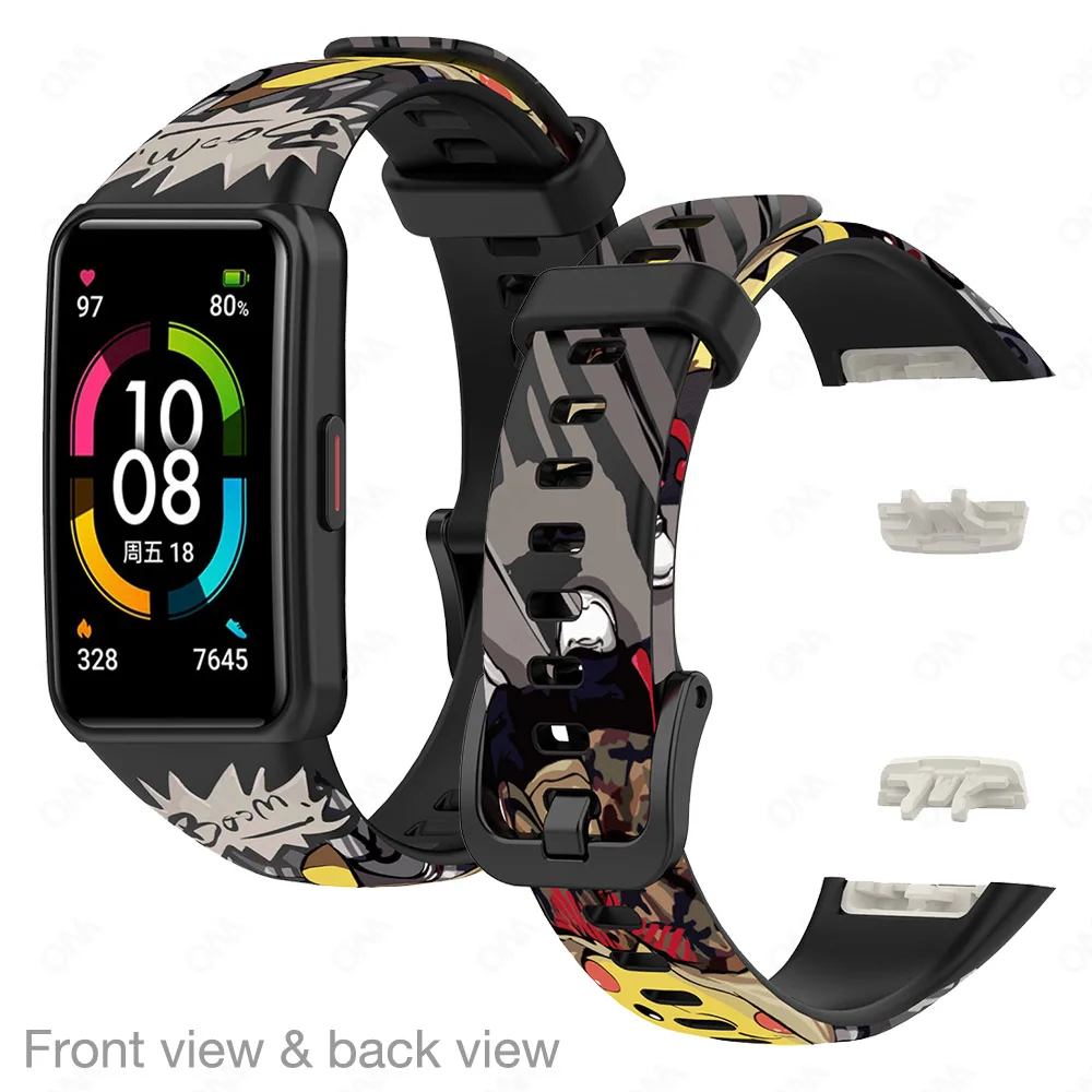 Ремешок для часов Huawei Band 6 Pro силиконовый ремешок Замена для Honor Band 6 браслет с рисунком напечатанный браслет новый
