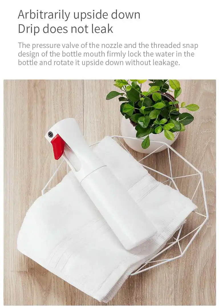 -В распылительной бутылке используется новый высококачественный экологически чистый ПЭТ-материал, который интегрирован с выдувным формованием.-Белая и чистая бутылка оснащена красным спусковым устройством с плоским ртом, который похож на элегантный белый Лебедь.