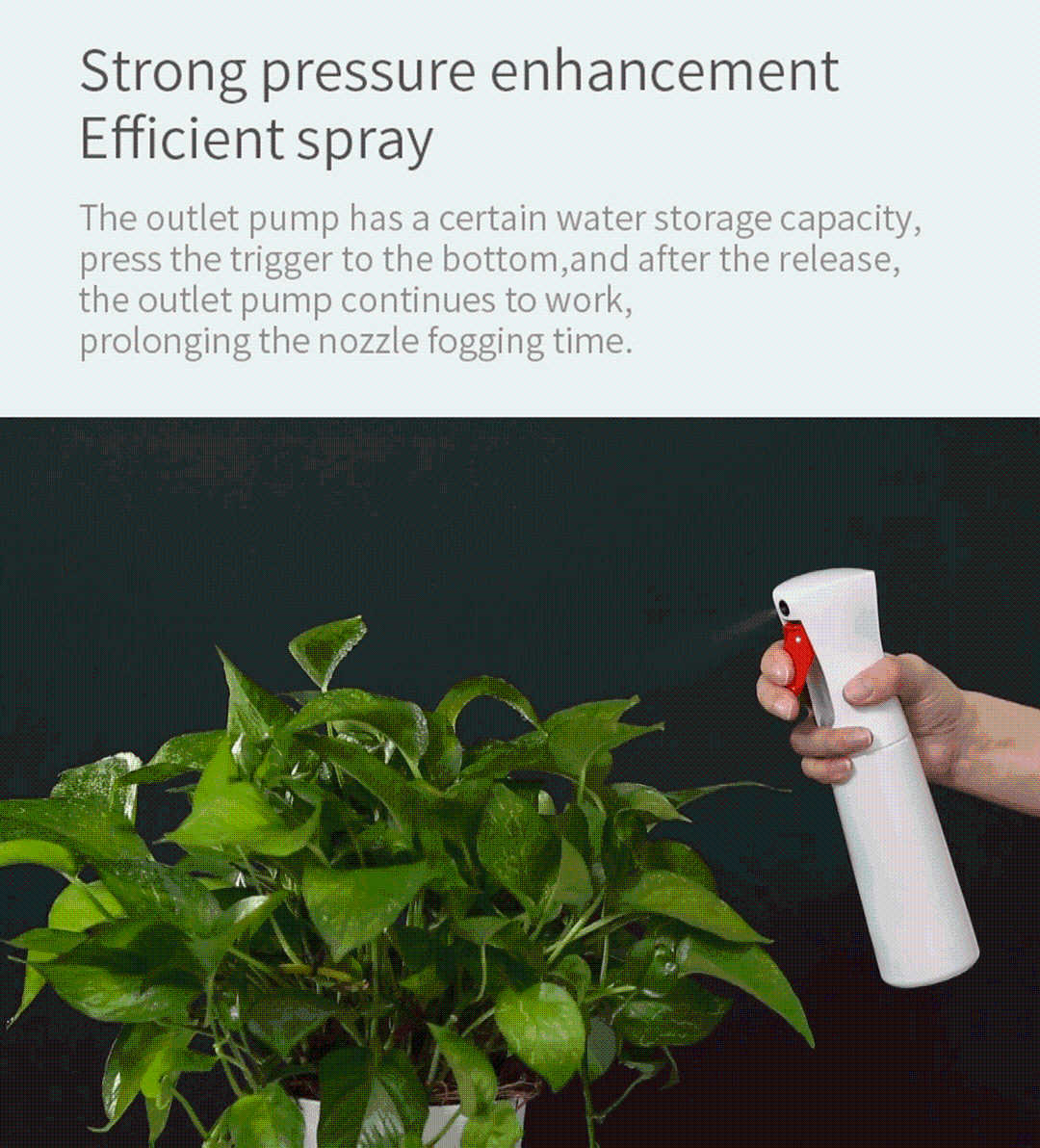 -Выпускной насос имеет определенную емкость для хранения воды, нажмите на спусковой механизм на дно, и после выпуска Выпускной насос продолжает работать,Продлевает время запотевания сопла.-Клапан давления сопла и резьбовой защелкивающийся дизайн рта бутылки надежно зафиксируют воду в бутылке и поверните ее вверх дномБез утечки.