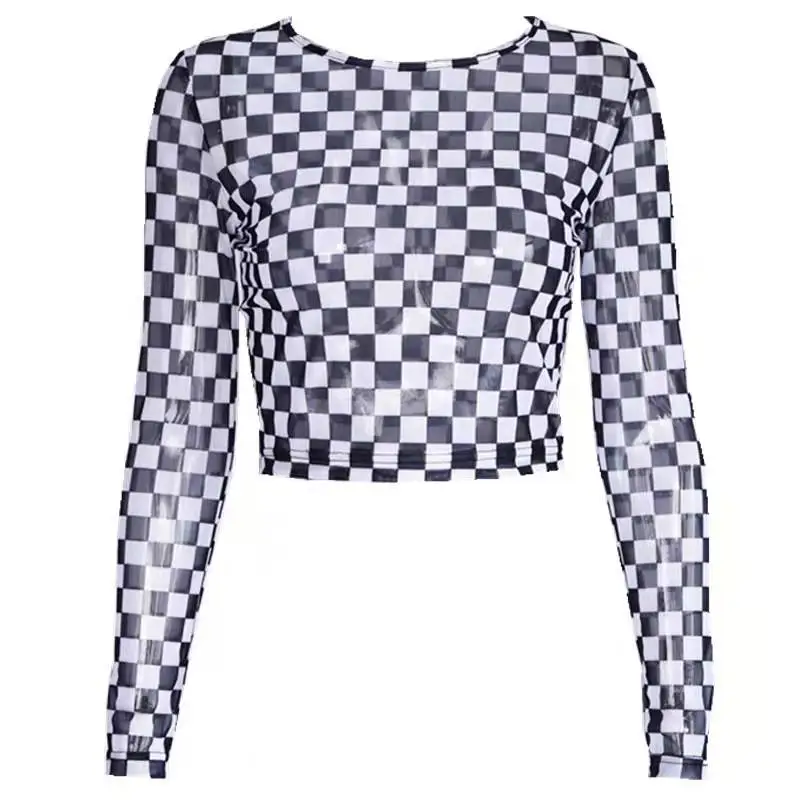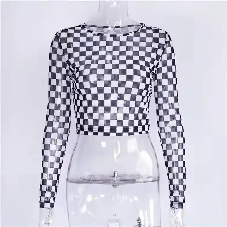 Сетчатые Топы в стиле Харадзюку, Просвечивающая футболка с длинным ...