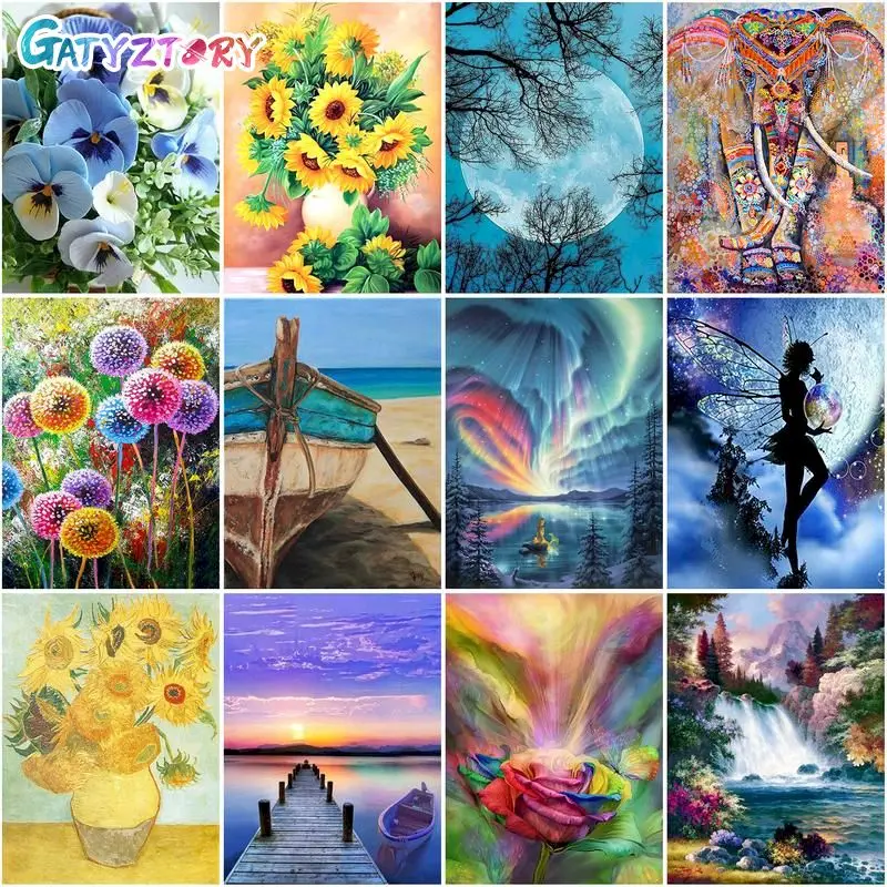 GATYZTORY полноразмерная алмазная живопись красочные наборы Стразы ...