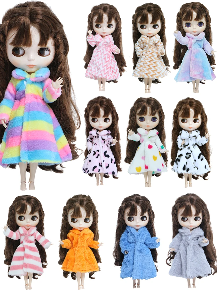 1 комплект, Кукольное пальто, зимний халат, теплый пушистый халат, милая Одежда для куклы Blythe, 11,5 дюймов, Искусственная Девушка, игрушки, много цветов