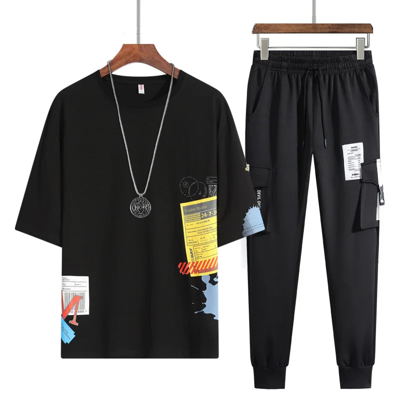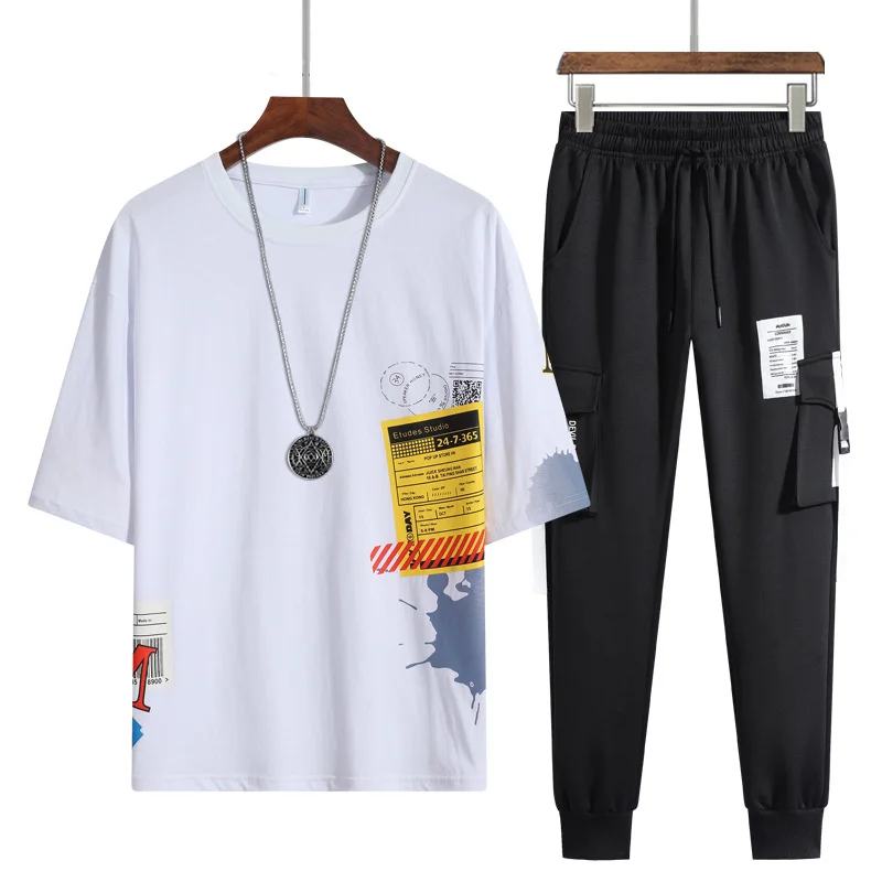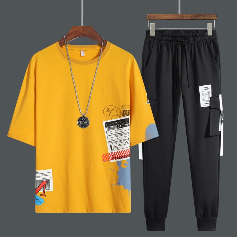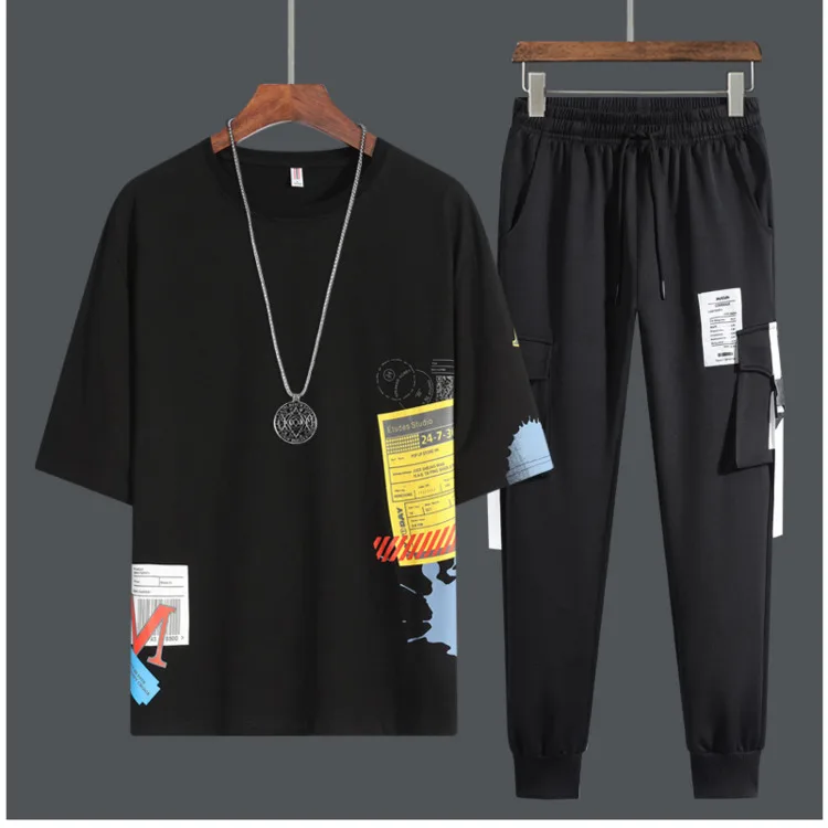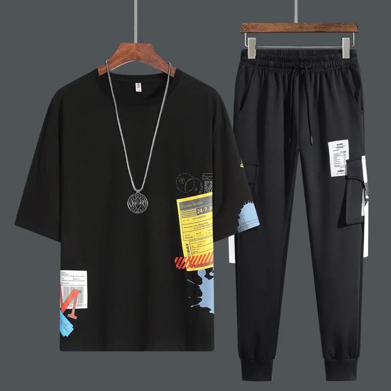 Мужской спортивный костюм из 2 предметов, футболка с коротким рукавом и принтом + спортивные штаны, Повседневная летняя спортивная одежда для мужа Sutdent, новинка 2022