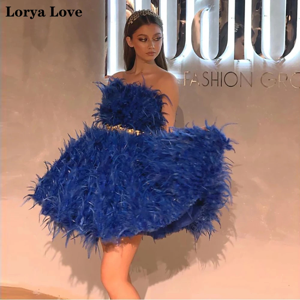 Официальное вечернее платье Booma, роскошное синее с перьями, без б...