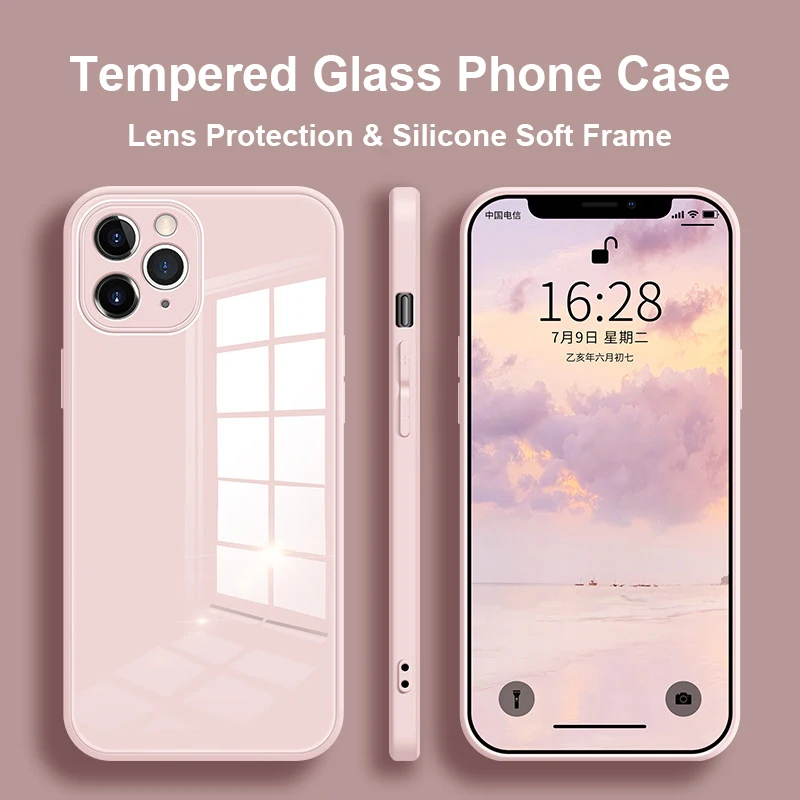 FeaturesTempered Glass Back Cover Silicone Frame Phone Case