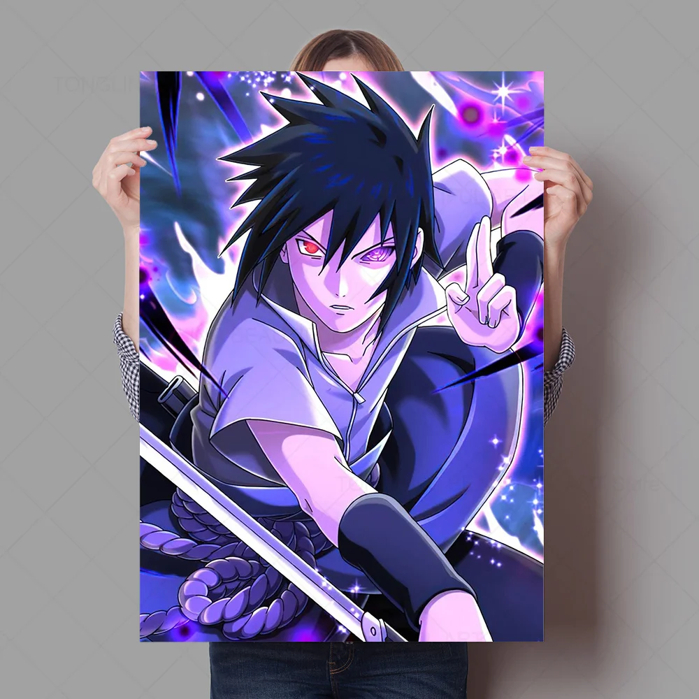 Классический аниме постер Наруто Учиха Саске популярная ролевая Картина на холсте красочные настенные картины Домашний декор для мальчиков Спальня