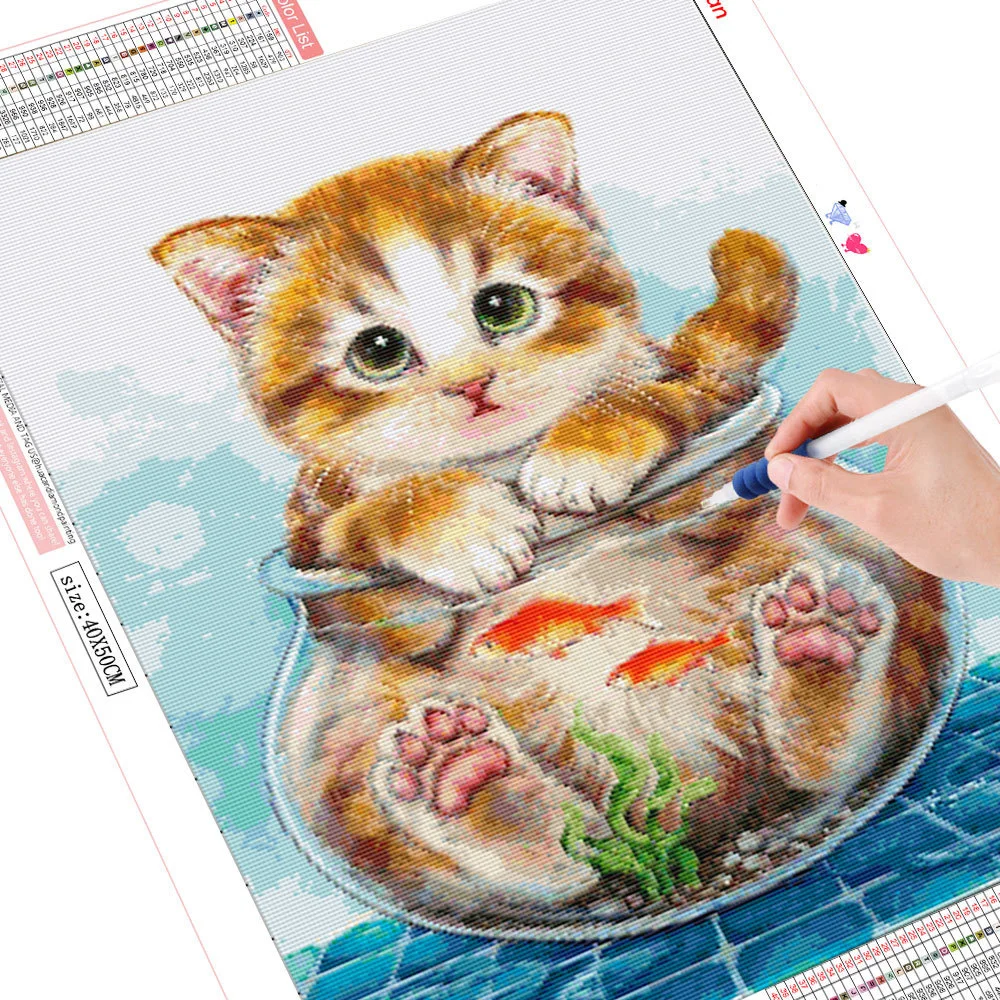 HUACAN, алмазная картина, животные, кот, крестиком, наборы, вышивка, рукоделие, наборы, Алмазная мозаика, рыба, Декор для дома